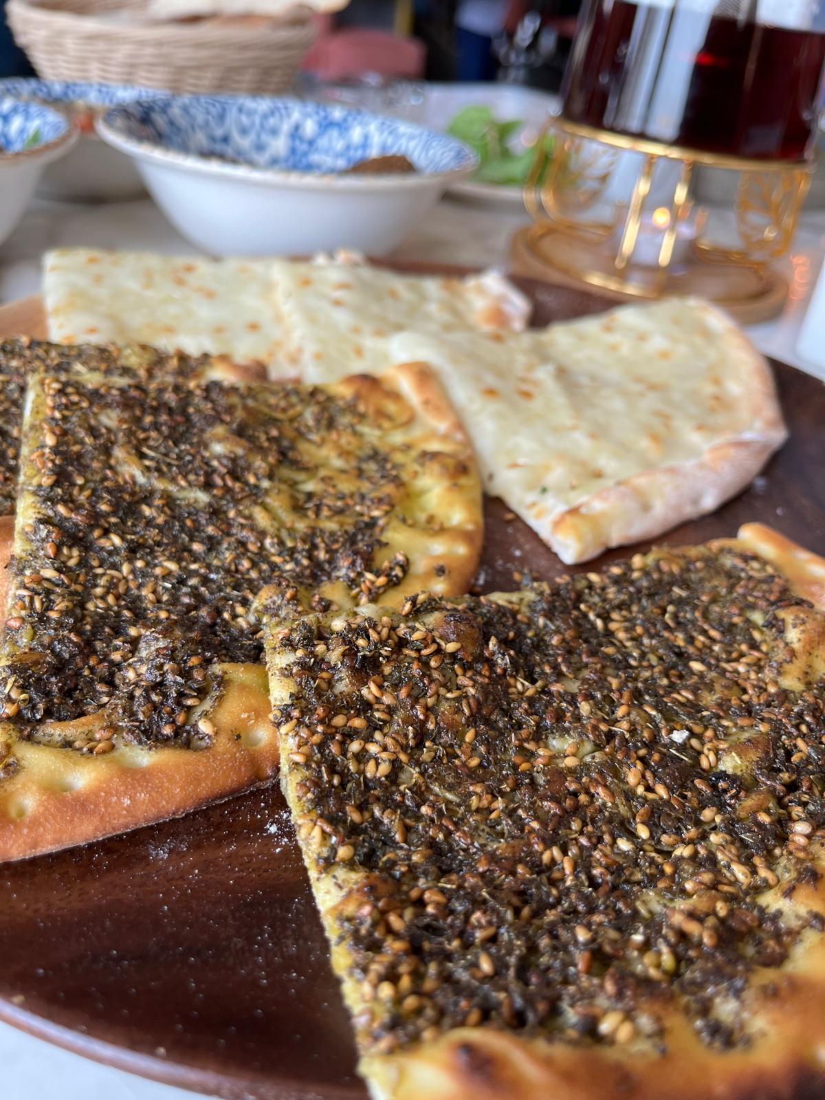 While most breakfast spots we tried were ordered to the table only, this one is so unique because it serves a full breakfast buffet on the weekends. Head over to Olympia Mall for Naranj. It’s a great spot serving unlimited local favorites. If you’re new to Arab Breakfast it might be the perfect place to start so you can sample everything and find your favorites. They have an omelet and flatbread station so you can customize your own. There are a variety of hot and cold dishes in the buffet. We definitely recommend the cheeses and hummus! There is even an entire dessert table so get ready to try a lot of dishes. They have a drink station with unlimited tea bags or powdered coffee. Overall, while it’s not our favorite place, it is a good place to get a sampling of all the foods and an even better place to go with a group so everyone can get what they want. Saturday from opening until 11am.