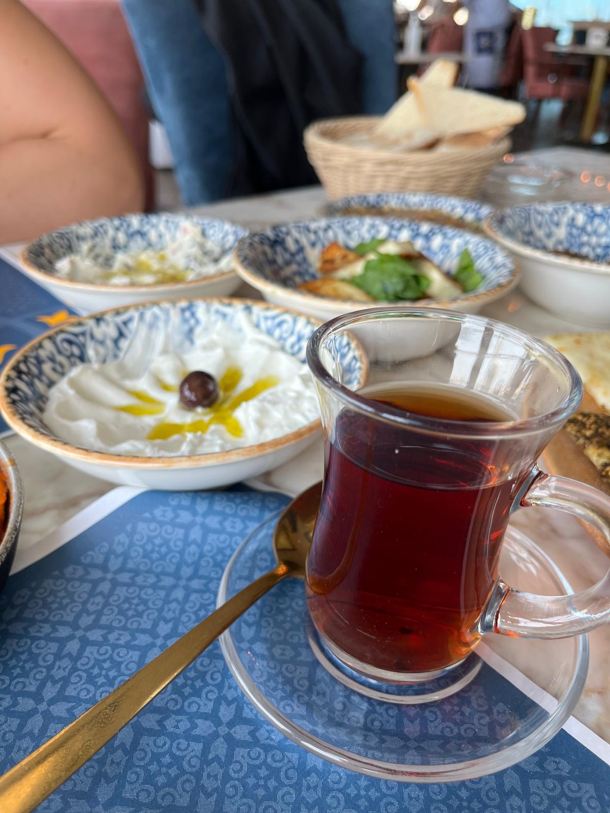 However even with so many differences, it seems that the Arab Breakfast has a few things in common. Generally, it’s a platter of small dishes serving a sampling of different dips, cheeses, and jams accompanied by olives, tomatoes and cucumbers. Usually there are a variety of hot dishes like beans, foul, or eggs and cold dishes like hummus, labneh, or pickled veggies. All of this served with a variety of bread and tea. The tea is what sets each apart. You can pick from classic black tea or the delicious karak tea. Karak tea is a milk based blend of black tea with spices like cardamom, cinnamon, anise and more. It’s so delicious. Some restaurants serve it sweetened while others allow you to add your own sugar. Either way, it’s a delicious treat.