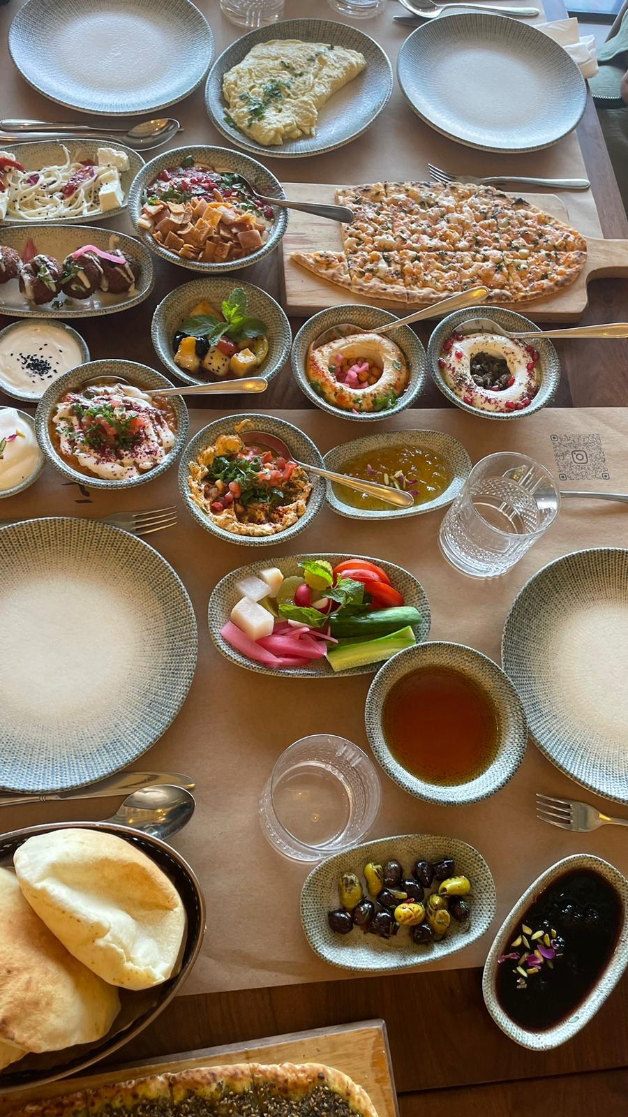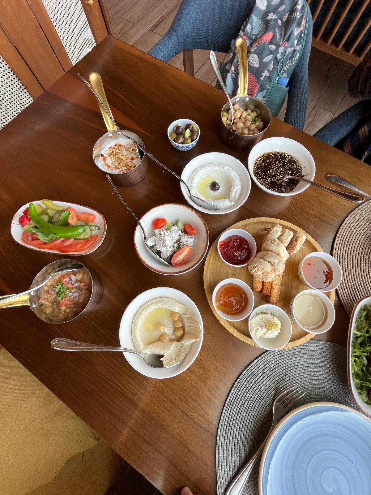 Generally speaking we’re not really breakfast people. Me being gluten free, it’s hard to get a good breakfast without wheat (think cinnamon rolls, pancakes, croissants, wow all the good stuff has gluten hahaha). I mean, on a daily basis, Josh skips breakfast as a meal while he intermittent fasts. So, if you had told me before we moved to the Middle East that we would make it a weekly tradition to go out and try a full blown breakfast at a different restaurant every week, I would have said you are out of your mind.