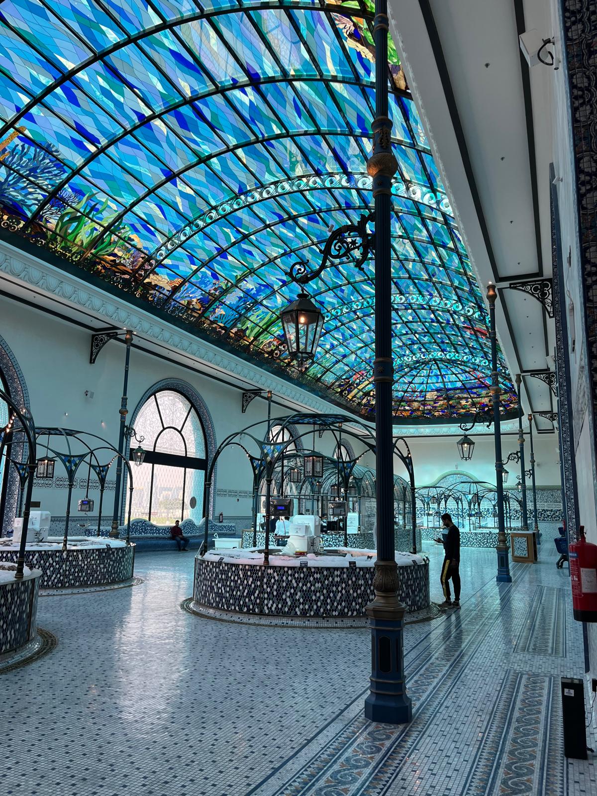 Dhow Harbour Promenade is a great place to see the old traditional boats used by the pearl divers back in the day. You can even rent a boat here to take you out on the water. The end of Al Bandar Corniche has the best views for sure. Head back in and to the east to MIA Park. Here you’ll find the beautiful Museum of Islamic Art. If you have time, we recommend a visit. However the outside is just as visually stunning. Take a walk over to East Mound-Skyline View Point to see the back side of the museum. Flag Plaza is another stop in this park district. This beautifully designed plaza has flags from many nations on display. It’s really quite a site when the wind is blowing! As you head out to Box Park, you’ll pass the Qatar Flour Mill Company. Depending on what they are making that day, you can smell the difference in the air. Mina District at the end of the pier is a site to be seen. This colorful city is a joy to walk around. With a few restaurants, coffee shops and cute stores, you can grab coffee and watch the cruise ships port here. Also the fish market is worth stopping at, even if you don’t plan on buying fish. It was hands down the cleanest, most beautiful fish market we’ve ever seen. Don’t forget to look up to see the amazing stained glass ceiling above the vendors selling fish!