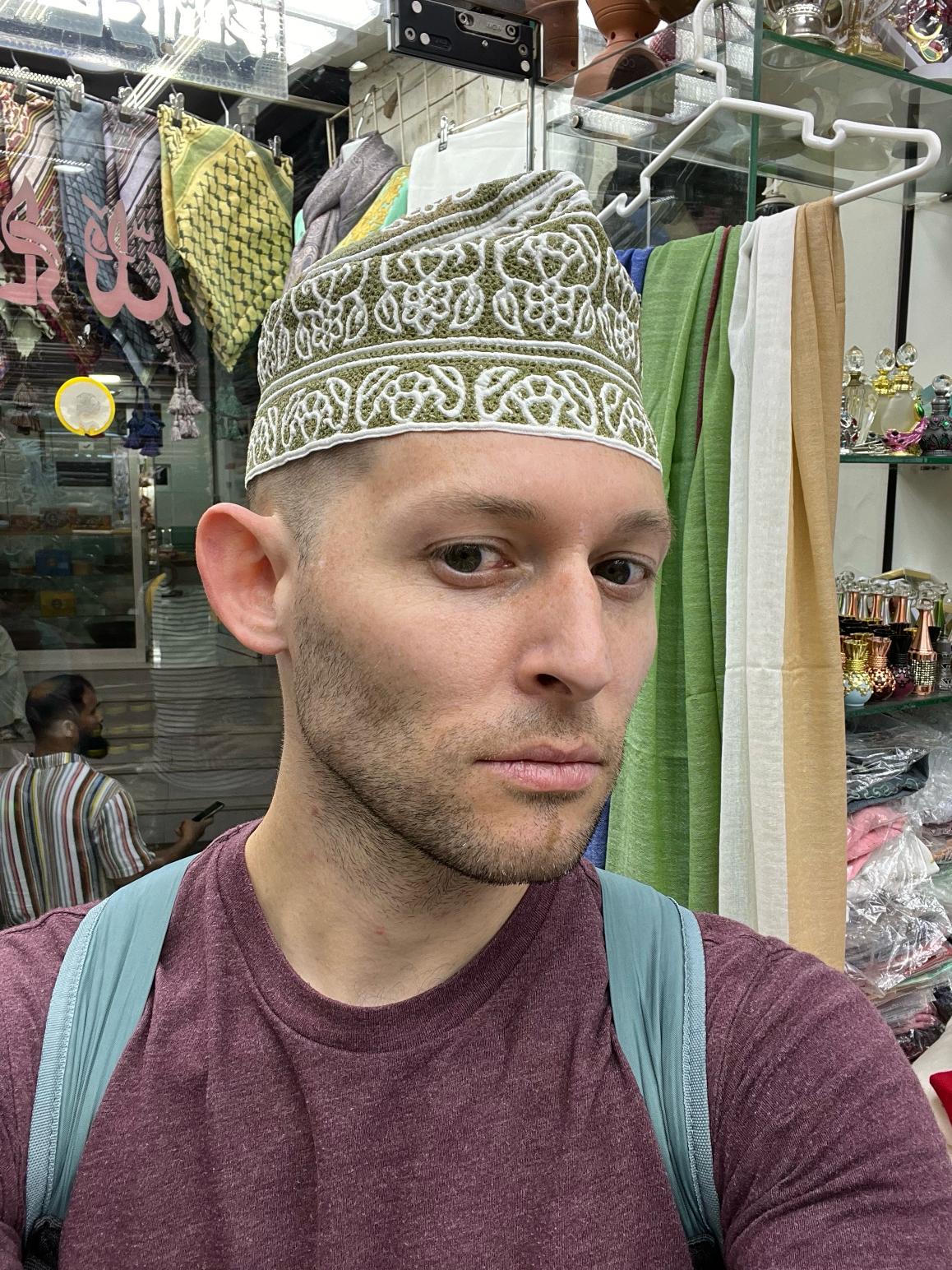 One of the first things that stood out to us was how colorful and interesting the Omani men’s traditional wear is. They match their thawb (long cloth that covers the body) with the kumma or circular cap that is embroidered with the most elegant geometric shapes in different colors. The men wear it proudly and with good reason, it looks great! Take note that the caps, although the same shape, are able to be folded and worn in different styles. It’s so cool to see all the differences! If you’d like to take a cap home for a souvenir, you can haggle at any market to get a cheaper version or you can spend good money at a tailor to get a nice quality one.