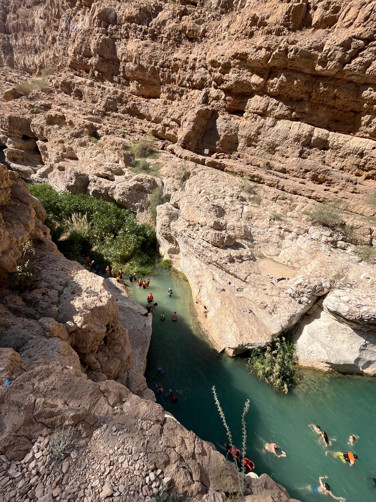 Hike Wadi Shab. Be careful as the Google Maps pin to Wadi Shab takes you up high to a look out. Use the pin instead for Wadi Shab Parking because you are actually looking to go under the bridge. You will drive through a small town to get there. Then park in the lot (or if there are a lot of people, you can park on the road) and take the boat (1 OMR) across. This boat ride is literally less than 2 minutes but unfortunately there is no other way across the water, believe me, we tried. The good thing is the fee for the boat ride covers you both there and back. The boat drivers are constantly making the short trip all day so when you return, there is no need to call them. They will be over to your side of the water in a few minutes with a new group of hikers. When you leave the boat, you will now hike 40-60 mins. It’s actual hiking so wear hiking boots or good sturdy tennis shoes. We saw people walking in flip flops but it honestly looked very uncomfortable. Your hike will automatically end at the Wadi Shab. This is where the real fun happens because now you can swim again. This Wadi is long and narrow and the swim takes you to a cave. If you are not confident in your swimming or holding breath skills, don’t attempt to enter the cave. If you do enter, you are greeted by a waterfall inside the cave. After all your swimming is done, sitting on the rocks to dry off is the perfect place to eat the lunch you packed with you from Muscat :)