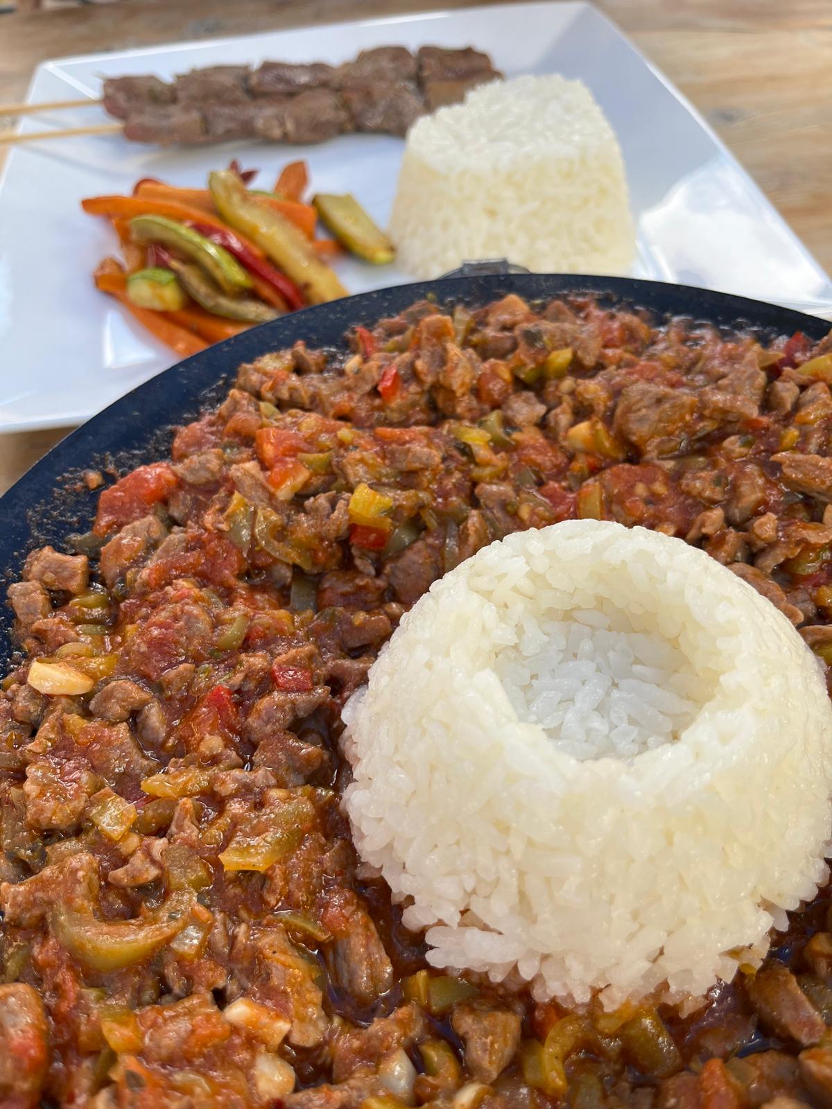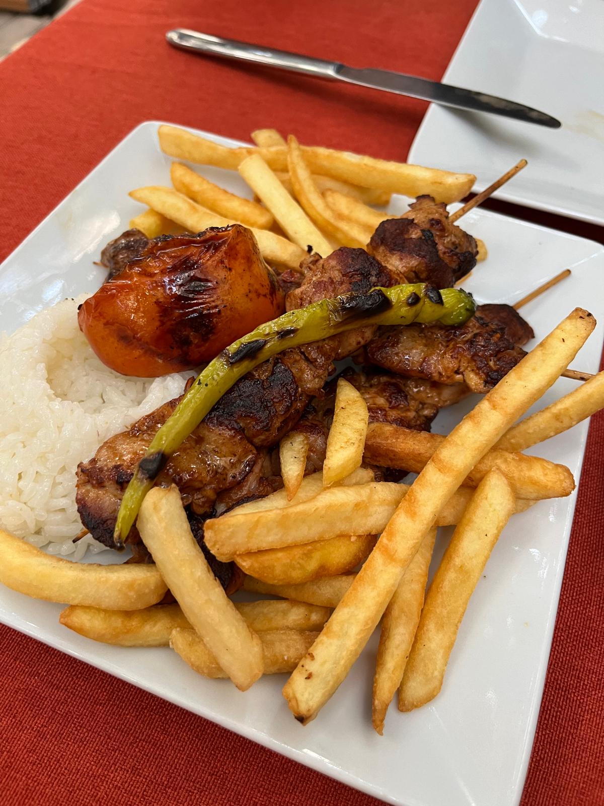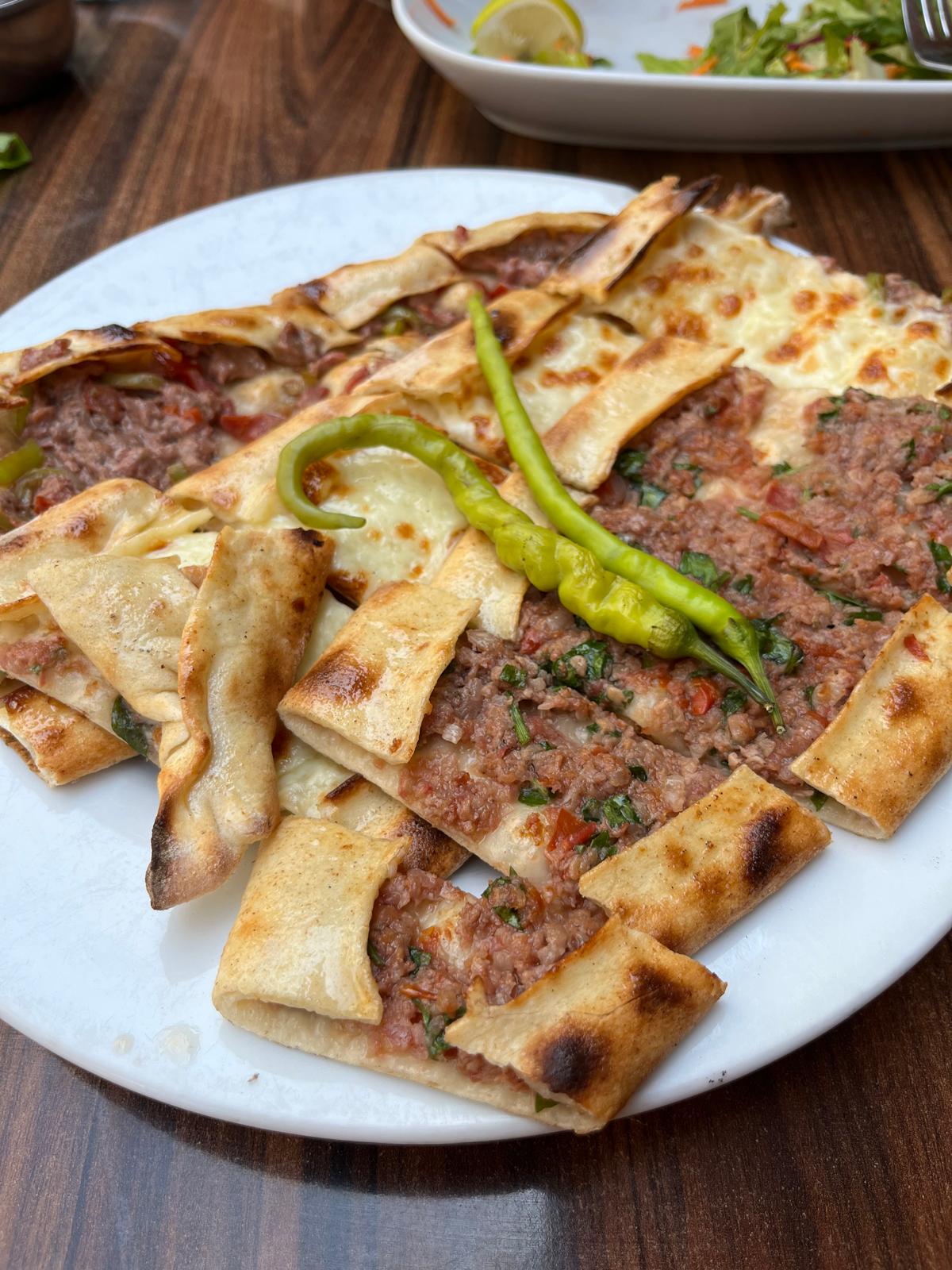 Local Turkish food is very good. With almost every meal, you’ll be served a salad of cut up tomatoes, cucumbers, and onions. These may be the only vegetables you encounter so eat up. The traditional meals are very grilled meat heavy: generally just chicken (tavuk), meat (et, sığır eti, dana) or lamb (kuzu) served in one of these styles: şiş / kebab (skewer), doner (shaved meat grilled standing up), or kofte (meatball). Everything is served either on bread or with a side of bread, even the sandwich on bread comes with a side of bread. There are thousands of types of bread, some dense, some soft and fluffy. And of course the desserts like baklava, Turkish delight, or Turkish ice cream (dondurma) which has a specifically chewy texture due to the salep powder.