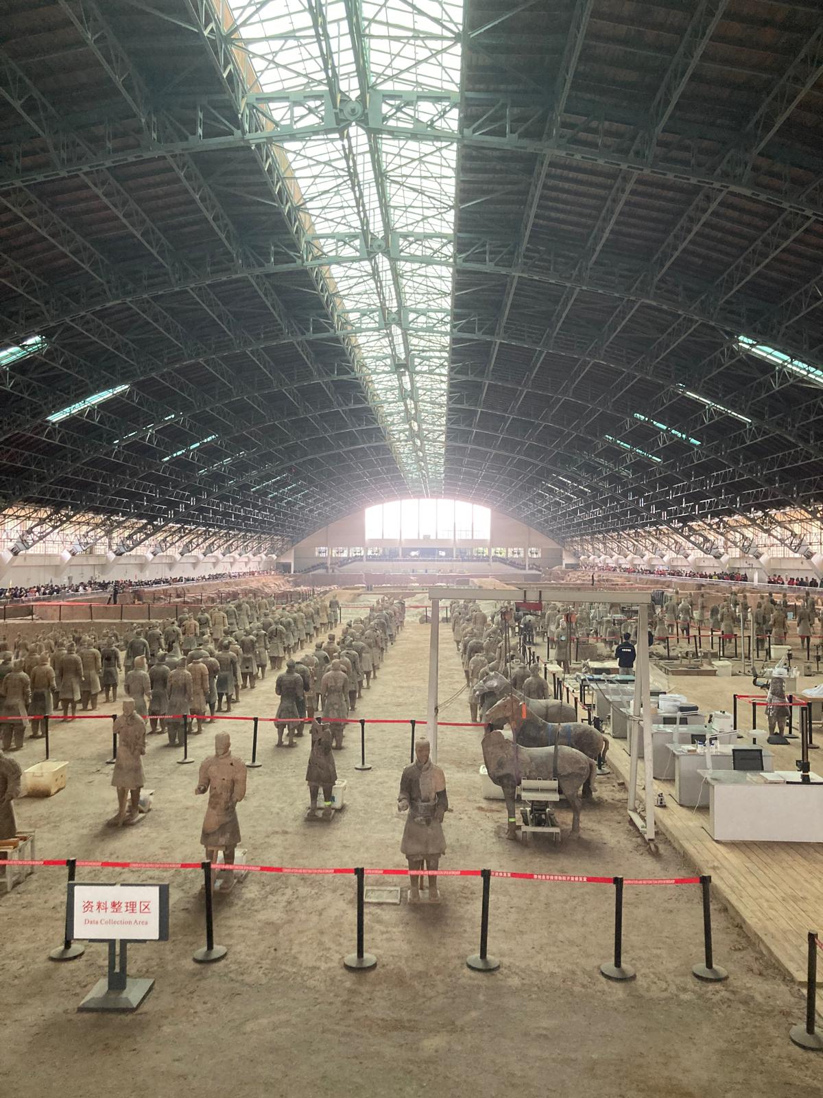 To be honest, the history of the Terracotta Warriors may be more impressive than actually being there. If you’ve traveled this far though, you should probably go visit but just be aware that it’s crazy crowded and you can’t get super close. Basically as we understood from our guide, back in 1974, a farmer was digging on his land when he accidentally discovered this massive underground grave site filled with thousands of statues made from terracotta clay. Each statue is life sized, with different facial features, eyes, cheeks, smiles, etc. It is rumored that the artists crafted each warrior off of actual individuals. They think that around 200 B.C. the first Emperor of China created this underground burial ground for himself so that the warriors, carved horse, and goods could keep him safe in the afterlife.
