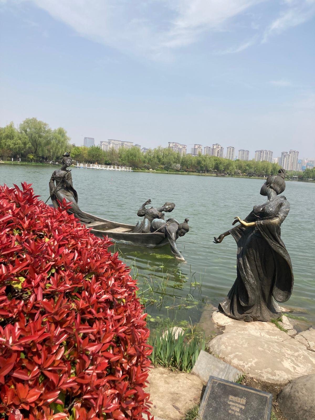 To the north of the walled city is Daming Palace National Heritage Park. This park is bigger than it looks. We spent a few hours walking around. There are beautiful gardens and a lake on the north side which is all free to enjoy. When the trees are in bloom, people bring picnic baskets and lay on the hills. Kids run through the grass and it’s just a pleasant way to spend the afternoon. However if you want to go inside the Palace or museum, there is a small fee. You can also purchase a tram ticket so you can ride around the park to see all the sights in about 30 minutes but I’d recommend a walk if you are up for it because you can meander through all that the park has to offer.